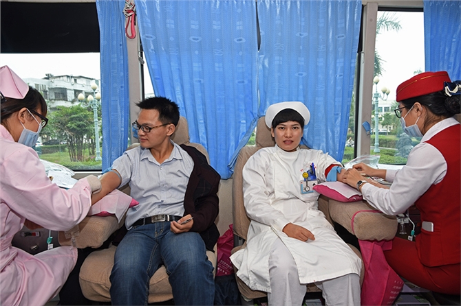 11月11日,电白区沙琅镇政府开展无偿献血活动,24名镇干部和村民献血6600毫升。