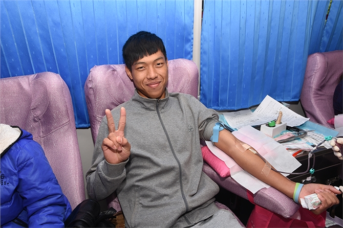 尽管天气寒冷,但同学们献血热情高涨,上午8点多,很多同学就已经来到献血现场,在献血志愿者的引导组织下,同学们首先有序排队进行体检。一部分同学是第一次献血,看着血液从自己的身体流向血袋,同学们脸上难掩兴奋,因为这不仅是他们自己难得的人生经历,更是薪火相传的爱心接力。同学们纷纷要求献血时拍照留念,血站宣传科人员立即用快速打印机把照片打印出来,当献血的同学在领取献血证同时又领到献血照片,人人露出快乐的笑容。