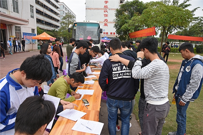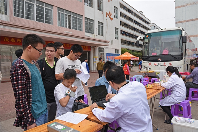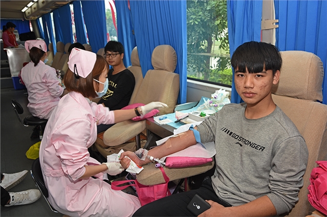 3月27日,茂名市高级技工学校在东、西校区同时开展无偿献血活动,47名同学献血10400毫升。