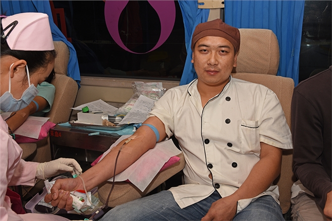献血现场,30多名青年学生志愿者热情辅导献血同学填表、体检、喝糖水,还主动安抚献血时情绪紧张的同学。志愿工作之余又纷纷挽起衣袖、伸出臂膀献血,以实际行动来传承雷锋精神。本次活动得到了全院同学和职工的积极响应和广泛参与,既有多次献血的也有第一次献血的同学,更有年龄超过40岁的老职工。学生饭堂的“大厨师”们也在活动的尾声抽空参加献血。