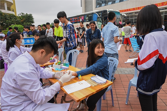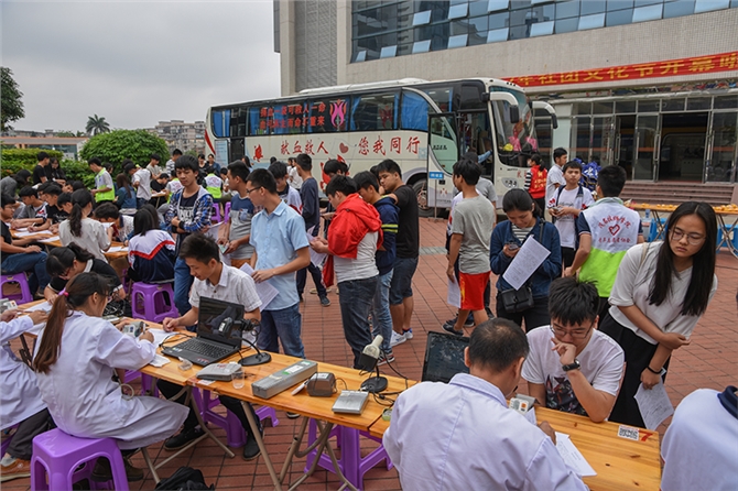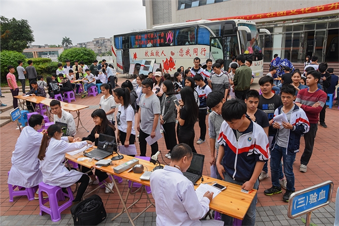 4月12日,茂名技师学院在校内开展无偿献血活动,100多名师生参加,最后104名师生成功捐献爱心血液25600毫升,为茂名地区医院病患者送去福音。