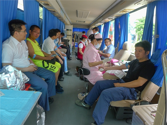 负责组织这次献血活动的党群工作部梁劲副主任不仅积极组织员工参加献血,还走上献血车献出了自己的爱心血液,这次是他第一次参加献血。