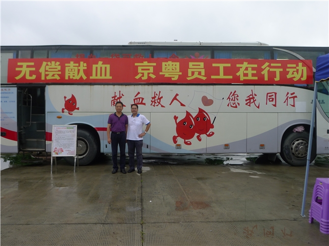在京粤汽车城场内,京粤公司为参与体检及献血的员工精心准备了献血前的鸡蛋和小蛋糕,京粤公司各部门领导和员工认真填写登记表,体检量血压,听心跳,进行血液初筛,合格后轻松地走上献血车献血。京粤公司董事长江浩华先生也亲临献血现场慰问员工,给大家鼓励和打气,各品牌店经理也带头参加了献血活动。京粤公司员工在献血车前排队等候,很多员工都是从工作岗位上赶来奉献爱心,猎豹汽车陈经理已是多次参加无偿献血了。他说:“作为一名自愿献血者,我觉得用我的鲜血给那些需要帮助的人带来健康和生命,是件非常有意义和快乐的事情。”