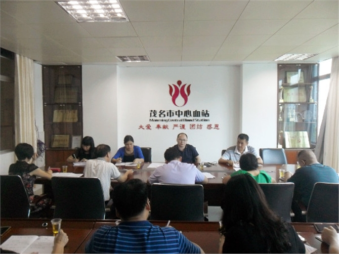 6月22日上午,省卫生计生委医政处陈永嘉科长、省卫生监督所血液监督科孙淑卿科长带领血液监督专家到我站进行执业周期验证审查工作。市卫生计生局调研员、茂名市献血办主任卿竹松,我站全体领导班子、各科室主任参加了迎检会议。