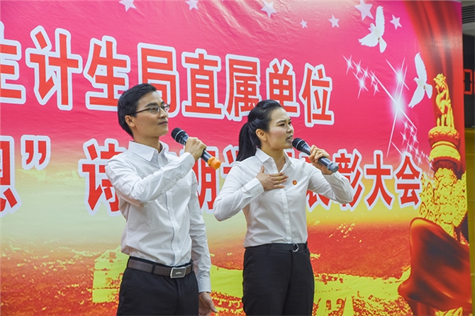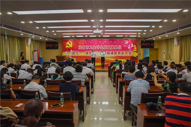6月28日,为隆重纪念建党96周年,茂名市卫生计生局在九楼会议室举行直属单位“迎七一 颂党恩”诗歌朗诵暨表彰大会。市卫生计生局直属单位12个代表队进行“迎七一 颂党恩”诗歌朗诵比赛,各选手情绪饱满、仪态大方、风格多样,充分展示出形象和魅力。市人民医院代表队获得一等奖,诗歌朗诵比赛中市中心血站代表队崔侨惠、欧明铭以丰富的表情、激昂的语调获得评委的好评,市中心血站和市卫生计生局代表队并列二等奖,其它代表队分获三等和优胜奖。
