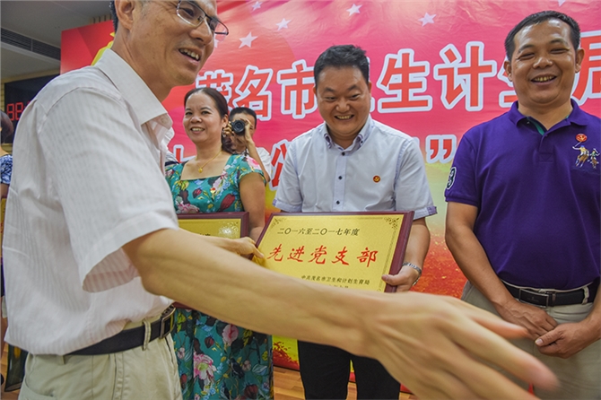 茂名市直工委领导和茂名市卫生计生局领导分别为获奖者和先进者颁发奖杯、奖牌或奖状。(本图文由 宣传科/游清 提供)