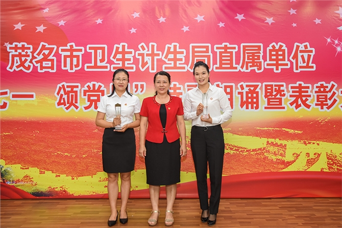 诗歌朗诵比赛后,为表彰先进,树立典型,进一步增强卫生计生系统基层党组织的创造力、凝聚力、战斗力,激发广大党员创先争优的积极性、主动性、创造性,茂名市卫生计生局党组在大会上表彰2016---2017年度12个先进基层党组织、127名优秀共产党员、13名优秀党务工作者。市中心血站党支部获得先进党支部称号,黄彦、崔侨惠获得优秀共产党员称号,向梅萍获得优秀党务工作者称号。