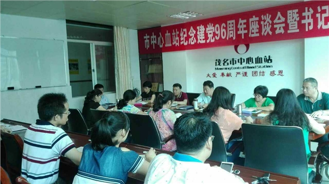 2017年7月7日上午8时30分,茂名市中心血站党支部在五楼会议室召开“纪念建党96周年座谈会暨书记专题党课”会议,会后到化州市革命历史纪念馆参观学习。