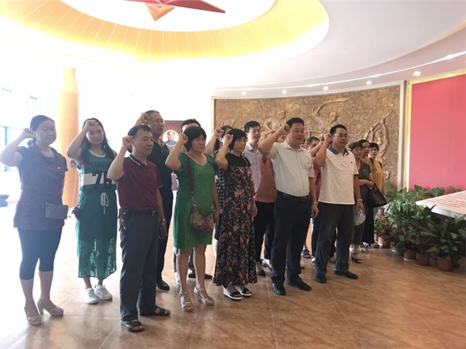 会后,全体党员乘车到化州市革命历史纪念馆参观学习,在参观过程中,在讲解员的边参观边讲解下,我们重温了化州人民在民主革命年代、抗日战争年代、中国内战年代中为了人民的胜利,抛头颅、洒热血,不怕困难,不怕牺牲,与黑暗势力作不屈不挠战斗到最后一刻的悲壮历史,革命战士(烈士)们英勇不屈的事例,感动了在场的每一名党员,大家心情激动,纷纷遣责日本侵略者和国民党狗腿子的残忍,也更加坚定了“没有共产党,就没有新中国”的理想和信念。最后,在陆书记的带领下,全体党员在党旗下重新宣读了入党誓词。