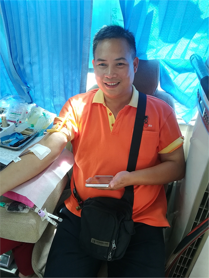 梁志杰先生第6次参加献血了,他说,无偿献血真是一件好事,可以帮助到别人,对自己的身体又好。自从我参加献血,头脑清醒,思维活跃,上楼梯没气喘感觉,连感冒都少了……