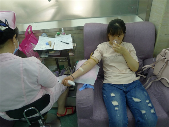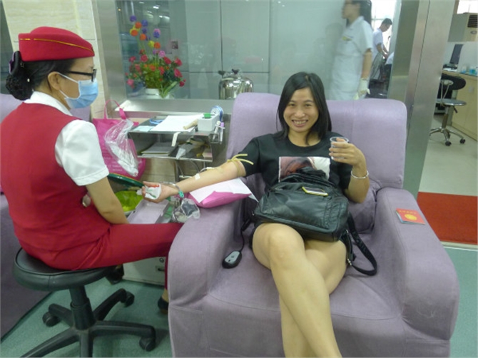 这次献血活动,有第一次来献血的姑娘,表现丝丝害怕,缩在采血椅上冒着冷汗,经工作人员耐心解释和开导,勇敢地献出了宝贵的鲜血;有数次或十数次来献血的“老枪手”,工作人员给他(她)拍照时,他(她)发出欢乐的笑声;也有母亲带着女儿,父亲带着女儿,来感受献血的;