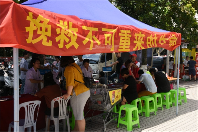 茂名市区、高州市、信宜市、电白区、化州市分别在8月5日、8月12日、8月19日开展暑期公益献血活动,全市5个活动点近千名市民顶着炎炎夏日来到活动现场参加献血和献血健康咨询。有许多莘莘学子前来奉献爱心:小李是茂名市一中的学生,因为某些原因一直没有机会参加献血,今年他考上了理想的大学,第一次走上了献血车献出了自己的爱心血液;电白一中的准大学生小陈是第二次参加献血了,假期过后,就要上广州开始他的大学旅程;还有一些回乡的大学生也来参加献血,为家乡奉献一片爱心。市民小梁收到了活动信息前来参加献血,她因为近期拔牙没有成功献血,但她动员跟她一起前来的小刘参加献血。在某高校就读研究生的小婷年仅25岁,从年满18岁开始就定期献血,2003年2月1日,小婷有亲友因患血液病,每周都需要输注红细胞。从那时起,小婷了解到临床用血的紧张和患者及家属的焦虑,最后,亲友抵不过病魔的折磨,离开人世。但这件事,却成了她参与献血爱心活动的动力。“为了能帮助他人,至今我一直都在坚持着”小婷说。当然,本次主题活动也少不了一直支持我们无偿献血的“老司机”,崔先生在市文化广场运动时看到了停靠在路边的献血车也投入到献血的行列,他是茂名石化公司的员工,这次已经是第十次献血了。化州市李女士在收到活动信息后从珠海赶回来参加献血,她的先生和女儿都是无偿献血者。信宜市的3位宝贝妈妈因为还在哺乳期,所以不能如愿参加献血,但是她们的精神值得鼓励。在献血的人群也出现一些特殊的例子:王女士是一位献血者,她的儿子是一位用血者,14年前她儿子确诊得了重型地中海贫血,使她对无偿献血的重要意义有了深刻的认识。她感谢这么多年来,茂名市千万的无偿献血者无私奉献,让儿子的生命得以延续,为了回报社会,她以及她的家人都加入无偿献血的队伍。当然,家庭献血也成了这次活动中亮点:在电白活动现场,李玉萍、李金丰姐弟挽袖献血;化州市黎女士已经是第4次参加献血了,她带着爱人杨先生一起参加献血。