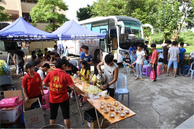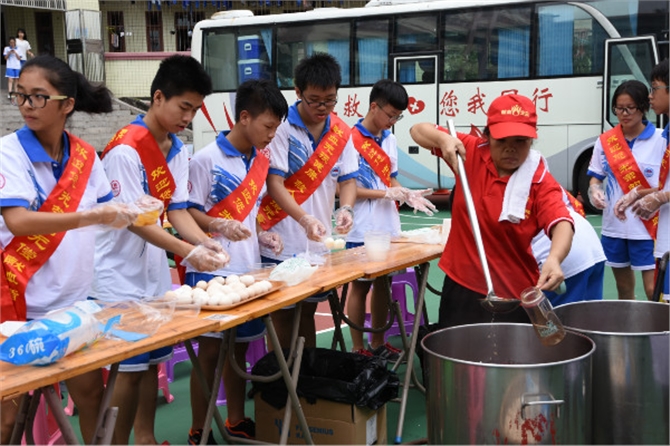 献血当天,两所中学都为献血的师生准备鸡蛋糖水,让他们避免空腹献血。电白实验中学的团委蔡书记亲临现场,维护秩序、指导献血。高州四中赖校长在献血现场指导,与血站的梁副站长、吕副站长交流献血工作经验。