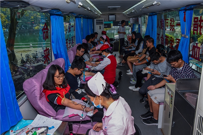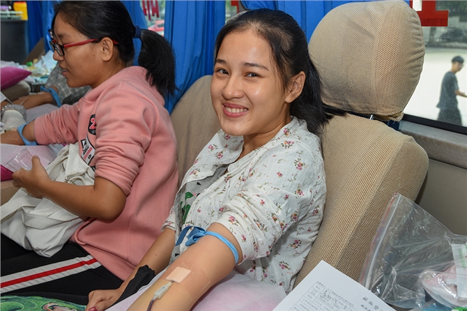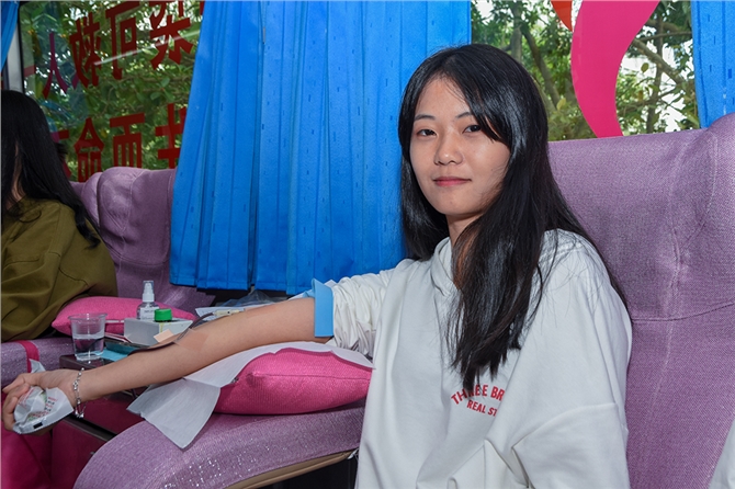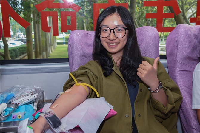 随着活动开展进程,献血学生越来越多,献血车下同学们自觉排队,一会儿已排出二条长龙。献血车上,他们挽起袖子纷纷献出自己的青春热血。一位刚献完血的“大一”同学说:“虽然这是自己第一次献血,但是并没有太紧张,内心更多的还是激动之情。作为大学新生,之前一直就想为社会做一份贡献,但一直没有找到机会,这次得知学院将举办无偿献血活动后,就积极报名参加了。希望通过自己的行动,可以帮助更多的病患者。” 同时,有更多同学已是多次献血者,成为献血的“老司机”。