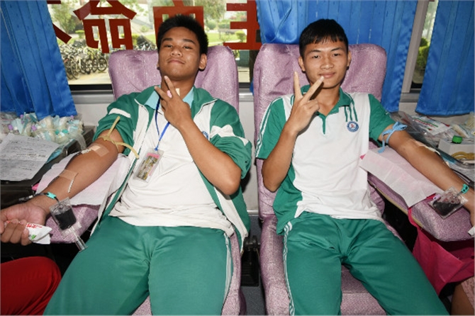 据陈书记介绍,为了做好本次的献血工作,血站宣传科工作人员已经提前在9日晚上自修期间,到校进行广播宣传,并组织了高二高三两级的班干部进行献血前的培训,让班干部对符合献血年龄的学生进行献血动员,报名的学生达385人。学校为了做好这次献血工作,安排饭堂在8时30分前煮好鸡蛋糖水送到现场,并为每一个献血的学生准备了午餐。