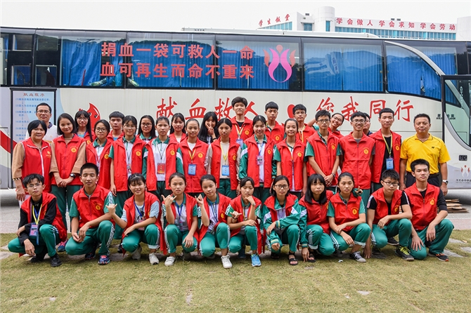 11月12日上午,秋高气爽,化州市实验中学与茂名市中心血站在校园操场内联合开展了一场大规模的献血活动。8时16分,当血站的三辆献血车缓缓停在操场的时候,该校团委陈伟明书记己带了40多名青年学生志愿者在献血现场提供优质服务。