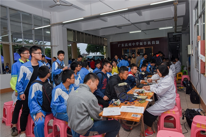 高州中学的学生是献血的主力军。在本次活动中,我们感受到了高州中学同学们的高素质与爱心。尽管天气寒冷,学业紧张,但是同学们仍然热情的加入献血活动。钟革辉校长和马小梅副校长亲临献血现场指挥活动,由学校社团的师生组成的志愿者队伍,积极的配合血站工作人员维持现场秩序、分发物资。同学们来到献血现场,从体检到献血结束领取证书都有秩序的排队,没有造成场面的混乱,展现了良好的教育素养。