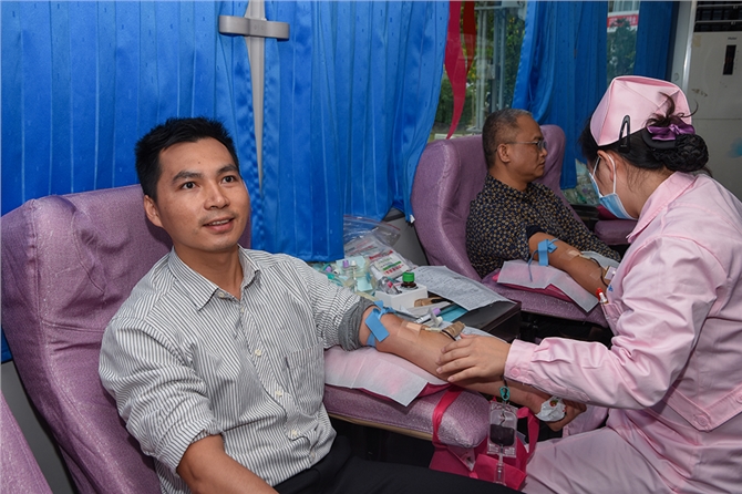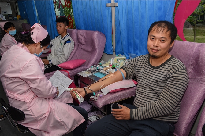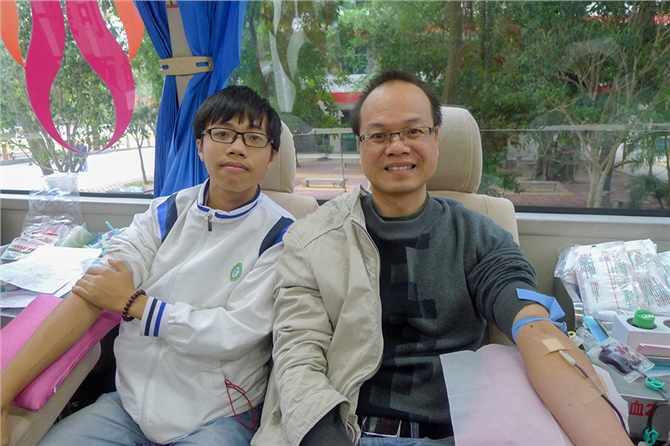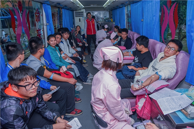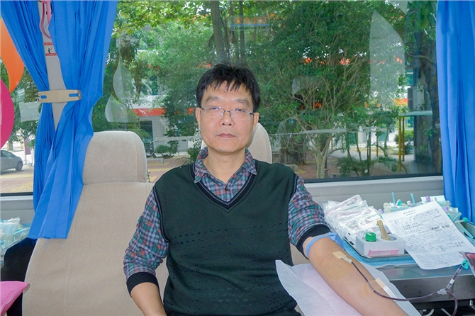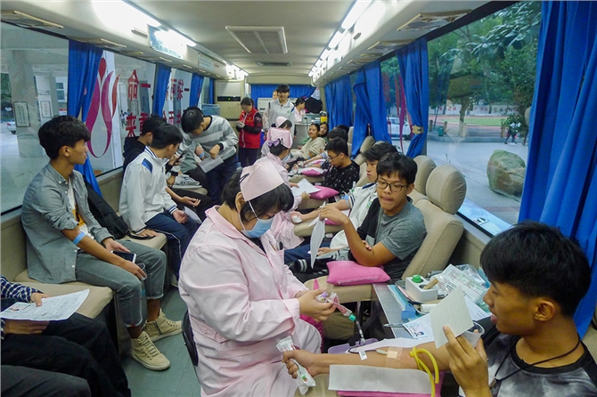 献血当天,西校区开放会议室,让师生们能在一个避风的环境中体检和休息。在献血现场,校领导亲临现场指挥,老师和学生志愿者为献血的师生准备鸡蛋糖水。献血车上,老师们一马当先第一批挽袖献血。西校区曾副校长第十一次献血。东校区献血负责人冯秀珍科长在现场为献血师生剥鸡蛋盛糖水,然后还亲自参加献血,这是她第五次献血。她说:“无偿献血有很大的好处,不只帮助别人,还可以帮助自己。”她还说:“我们学校有一位老师的直系亲属因为疾病治疗,一年输血的费用就高达十几万元,而这位老师因为事前献血累计已超600毫升,他亲属输血的血液成本费全部报销,减轻了极大的经济负担。这是活生生的例子,充分体现了我为人人,人人为我的互助互爱精神,所以我们提倡健康的人要积极参加无偿献血。”
