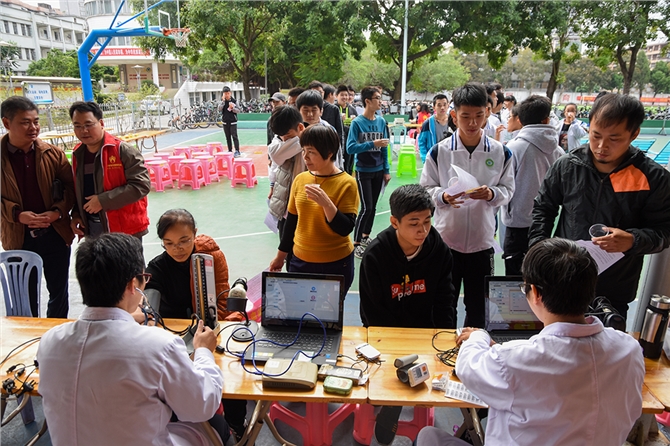 近日,今年最强寒流袭击本市,气温最大下降十几度。一夜间从夏季进入冬季,早晚温度低至十四摄氏度,茂名市第十七中师生不畏寒冷,123名师生在寒风中坚持献血。