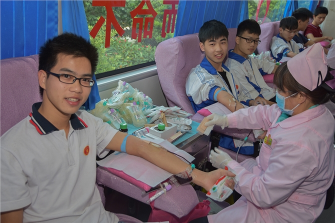 化州市第二中学是化州市的重点中学,具有现代化气息和浓厚的文化氛围,建校以来,学校始终坚持“以人为本”的办学理念,主倡“团结、拼搏、求索、奉献”的精神,致力推行素质教育,让不同层次和不同特长的学生发挥潜能,赢得了社会各界的广泛好评。献血前几天,茂名市中心血站宣传科组织人员到学校进行献血前的广播及宣传,消除了学生献血前的疑虑,因此报名献血的学生达到了410多人,但在献血当天,有部分没有报名的学生,受献血现场热烈的气氛感染,也加入到无偿献血的队伍当中来。