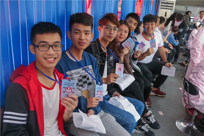 志愿者的身影在现场随处可见,他们迅速穿梭于各区域活动现场。跃动的工作证和象征性的温暖笑容是他们对志愿工作的无比热爱。志愿者们在填表区送上的每一声热情指引,在糖水区扬起的每一片温暖微笑,在休息区递去的每一句亲切问候,都满含对献血者的无限敬意。
