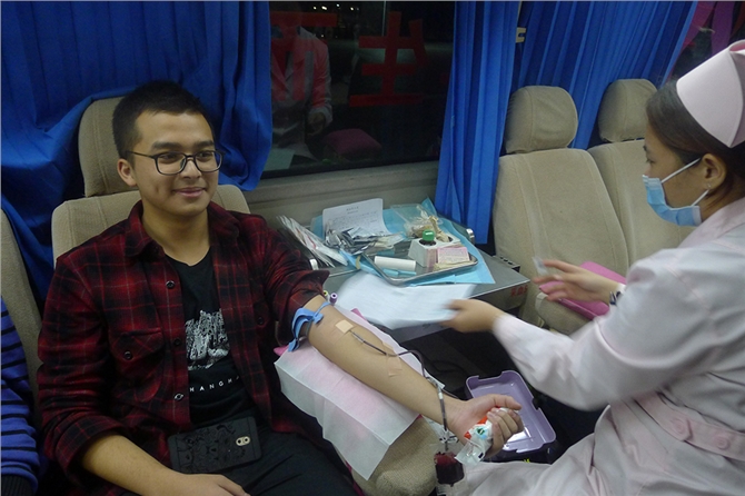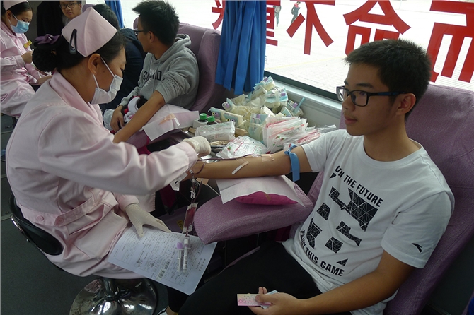 27日下午,在温暖的冬日阳光下,四辆献血车缓缓驶入了美丽的市一中校园,在校图书馆前,下午四时十分,一批又一批报名献血的师生从校园的各处聚集到献血现场,积极参加无偿献血。为了保证本次活动的顺利开展,校方特别安排了40多名学生志愿者协助工作。从填表、体检、分发鸡蛋糖水、上车献血到最后的休息领取献血证和纪念品,都有他们热情工作的身影。有了志愿者们的指引,活动现场有条不絮。组织本次献血的政教处梁副主任一直在现场协助工作,好几个班主任也一直陪伴学生到献血结束,为他们加油打气,有的老师还带头参加献血,有一个不愿透露姓名的老师,了解到了本次献血活动,特意从茂名市区赶到学校参加献血,令我们感动。同学之间也相互关心和鼓励,场面无比温馨。本次献血活动吸引了许多学生、家长来到献血现场,市中心血站的工作人员为他们详细的讲解无偿献血知识,传递无偿献血精神。