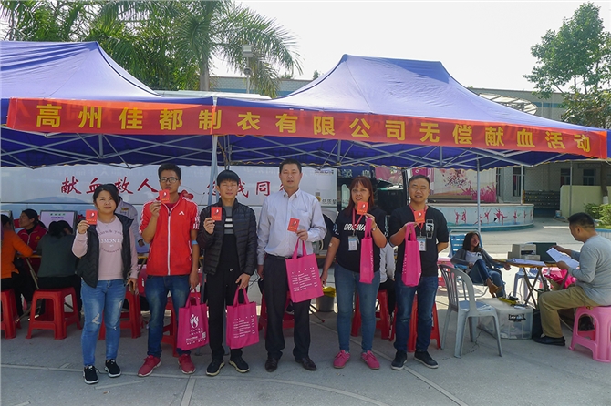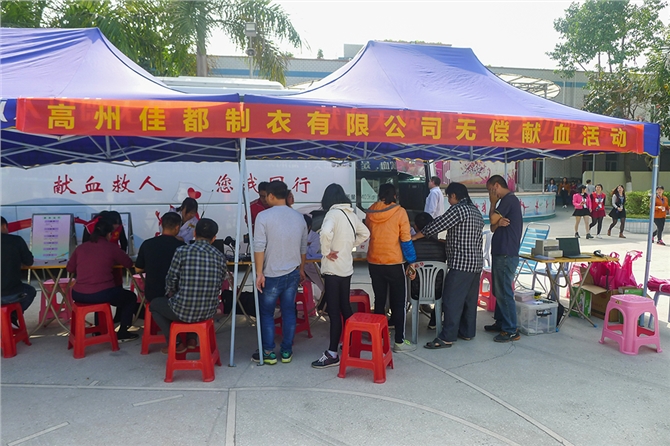 高州佳都制衣有限公司是一家港资企业,坐落于广东省高州市金山开发区,在粤西地区形成一个国际品牌的专业服装生产基地,经常致力公益事业活动。近几天,当公司领导获知血站血液库存紧张时,立刻同意组织员工参加无偿献血,以挽救更多的生命。由于临近春节,公司的定单特别多,经与血站宣传科商量,决定利用员工午餐的空隙时间开展献血活动。为了组织好这次活动,公司采取了发放宣传资料、播音员宣教等多种形式,广泛宣传无偿献血的政策法规和有关献血的科学知识,使广大员工充分认识到无偿献血工作的重大意义,提高了参加无偿献血的积极性和主动性。
