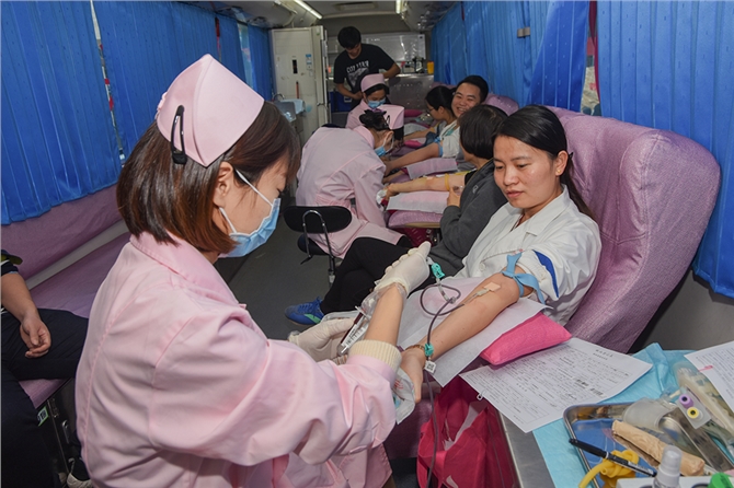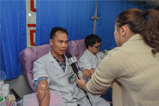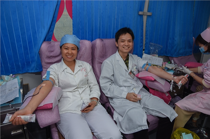 25日下午2点半,市中心血站无偿献血车驶入茂名市中医院门诊大楼前,医院的医护人员在血站医生的指导下,认真地填表、体检、排队等候献血。在现场了解到,参加此次献血活动的队伍中,有不少人都是多次参与献血的献血达人,也有第一次参加献血的90后,他们当中有的是夫妻,有的是母子。该院黎治荣院长亲临献血现场为职工打气鼓劲,曾明副院长从电白区赶回献血,完成他第9次献血的心愿,杨滨华医生和吕东燕护士夫妻俩双双伸出手臂捐热血。张展庆这次已经第7次无偿献血,他说,因为曾目睹病人急需用血的紧迫,更能体会到血液对挽救生命的重要性。作为医务人员,希望通过亲身参与无偿献血来带动更多普通民众参与社会公益。董春龙已是第6次献血,他表示,无偿献血可以帮助他人,而且有益健康,基本上每次都会参加卫生计生系统无偿献血活动。