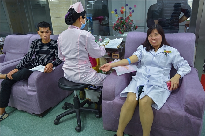 医务人员与企业职工一起献血,共同应对血液库存偏低。据统计,两天共有149名白衣天使和企业员工献血3.85万毫升,他们用实际行动支持无偿献血事业,有力地缓解了血液库存偏低的情况,但离充足的血液库存仍有很大差距,希望市民积极献血,以帮助更多的病人,挽救更多的生命。(图文:林冰)