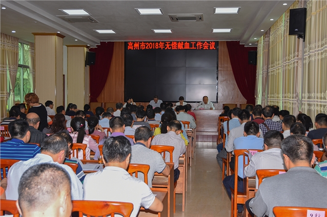 高州市卫生计生局长杨文在会上总结高州市2017年无偿献血工作,2017年高州市不断创新无偿献血工作思路和方法,加大无偿献血宣传力度,抓好街头自愿无偿献血、计划指标献血、降低互助献血比率,完成茂名市政府下达的招募献血任务4975人次,献血量99.5万毫升,完成率93%。杨文局长还部署了高州市2018年无偿献血工作。