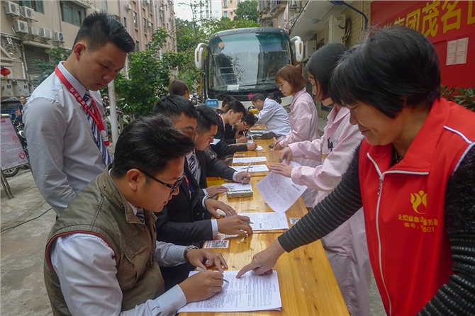 2018年3月20日,世华集团茂名世华易居组织公司的精英们参加茂名市雷锋月无偿献血活动。活动前期,市中心血站的工作人员与公司的任经理沟通落实了献血场地、时间以及注意事项,并在公司内积极动员和宣传,因而得到茂名世华精英们的积极响应。献血当天,茂名世华的精英们准时来到活动现场,认真按要求填写献血登记表、体检和上车献血。精英们详细咨询医护人员,排队时耐心的等候,满怀热情奉献出自己的爱心。茂名世华易居茂西战区区域经理李杰先生在现场接受媒体采访,他代表世华的精英们表达了世华的企业文化精神,为能够参与无偿献血活动,为社会公益事业尽一份力而感到光荣和自豪。