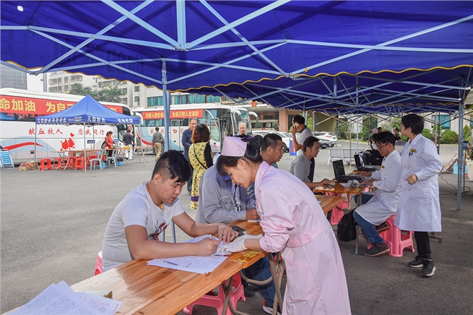 4月11日,由茂南区献血办与市中心血站联合举行的茂南区直属单位无偿献血活动在茂南区政府大院进行,这次活动的主题是“为别人的生命加油 为自己的人生添彩”。来自区委办、区府办、区卫计局、区公路局、区国土环境和城乡建设局、区人力资源和社会保障局、区市场物业管理中心等单位的近80名干部职工参加。区献血办的二位同志在献血现场指导献血者填表和体检。