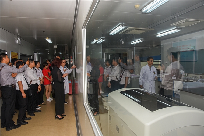 当天上午九点,与会同志已来到血站一楼采血大厅,他们在血站工作人员的带领下参观采血科、成分血库科、检验科等采供血业务科室,实地观看了血液从采集、检测到分离制备、贮存发放的全过程,认真听取了工作人员对采供血每个流程的详细介绍,零距离直观地感受工作人员如何用现代设备将采集的标本进行分离、检验、分类贮存。