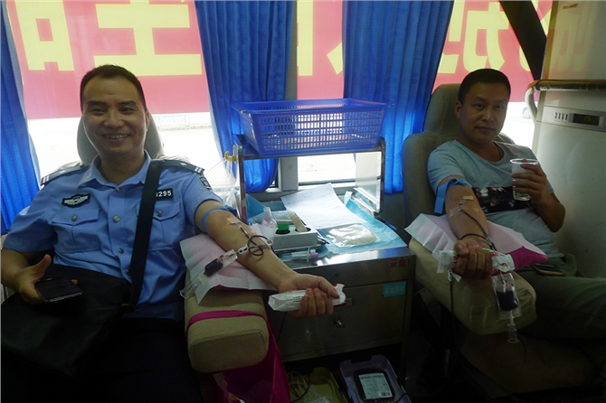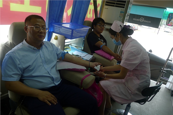 活动当天,鉴江开发区的李明党委和南盛街道办的张作楷副主任一直坚守在现场,给前来献血的干部职工加油鼓劲。鉴江街开发区的邓励锋书记率先参加献血(他己经是第10次参加献血),榜样的力量是无穷的,在他的带动下,辖区内的干部职工纷纷加入到献血的队伍中来。鉴江派出所的李所长带了几个“手足”一起来献血,听李所长说献完血后马上又要去执行新的任务。