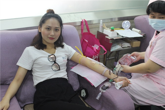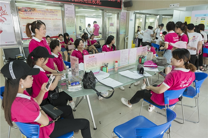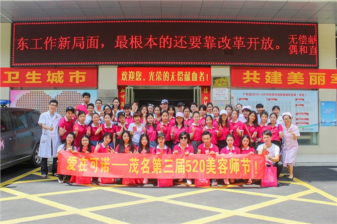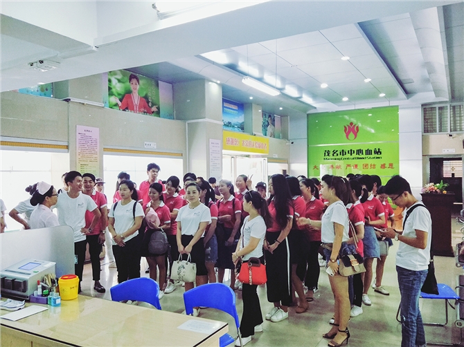 5月20日上午8时多,几十名美容师如约来到血站采血大厅,他们是茂名可诺丹婷美颜美体的美容师们。