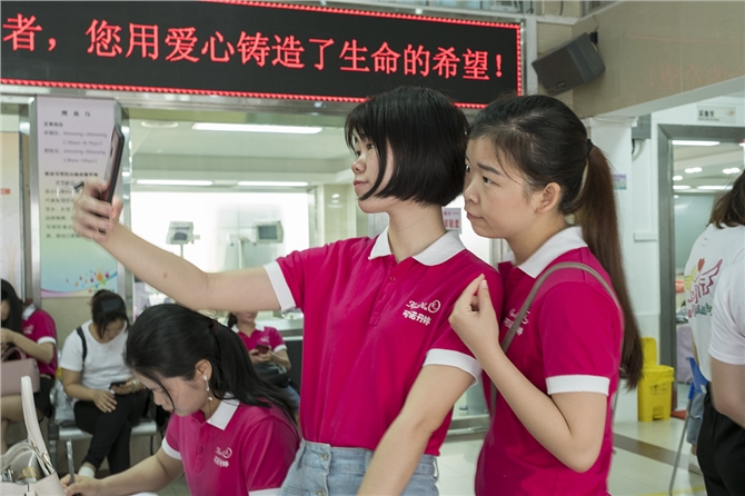 5月20日是“告白日”更是“美容师”节。这天虽然是星期天,血站还是安排人员上班,配合他们的爱心行动。几十位美容师纷纷填表、体检,而暂时不满足献血标准不能献血的人员,也为其它献血的同事递上温开水,做好贴心服务。忙碌的献血者身影中,他们不时用手机互拍留影,一时血站采血大厅热闹非凡。这也是该公司成立以来规模最大最有组织的一次爱心献血公益活动。