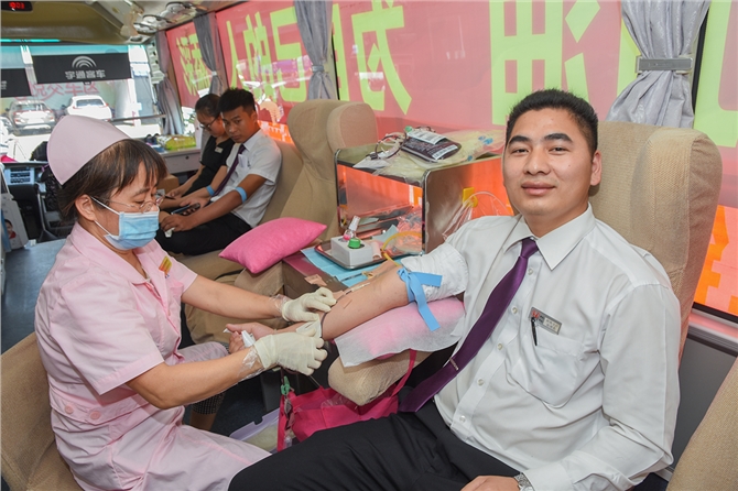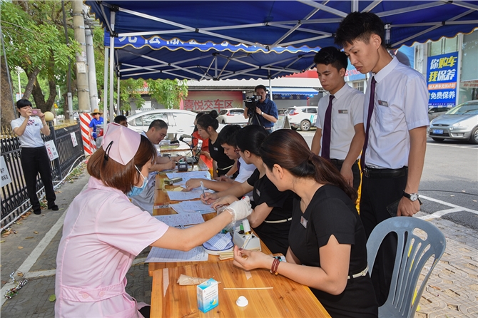 当天上午9时许,在无偿献血现场,利泰汽车销售公司员工在献血车有序排队,有条不紊地填表、化验、献血。在这些献血员工当中,他们有的是数次参加无偿献血的老同志,也有刚参加工作不久的新员工。这次献血活动组织者杨秀雄主任献血200毫升,这是她第3次无偿献血。周熙源此次献出了300毫升血液,距离上次献血刚好半年,符合献血间隔时间,他说,献血可以帮助别人,对自己身体也有好处。聂国春是首次献血,他说,献血可以奉献一份爱心,为临床需要用血的人提供血液,挽救生命,以后还会继续参加无偿献血爱心活动。