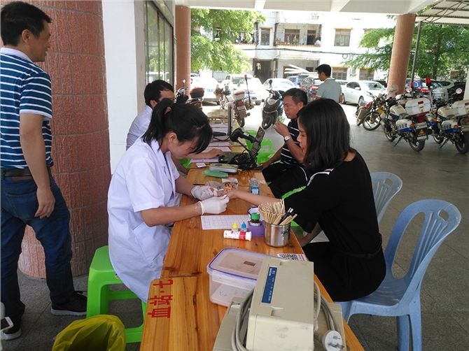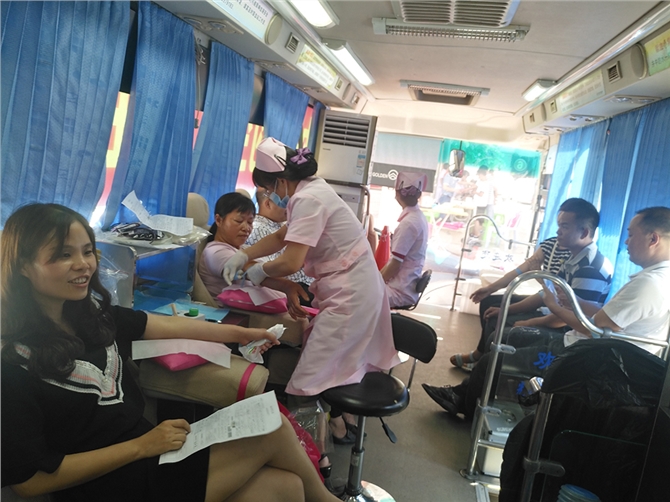 献血现场,在工作人员的指导下,广大干部群众积极配合,有序地填写申请表、测量血压、抽血检验、进行献血等。医务人员细心地询问献血者的身体情况,并为没有及时吃早餐的干部群众送上牛奶和面包等食物,并耐心讲解献血的好处以及献血后的注意事项。整个活动现场井然有序,活动当日,共有100余人参与献血前体检,成功献血43人次,累计献血达8600毫升。