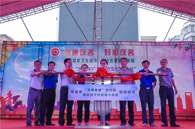 广东省计生协会领导、茂名市副市长崔爽、茂名市卫生计生局长黄立红等领导参加茂名市“青春健康”进校园暨“百镇千村健康大讲堂”启动仪式。广东省计生协会领导、茂名市副市长崔爽在仪式上作了重要讲话。