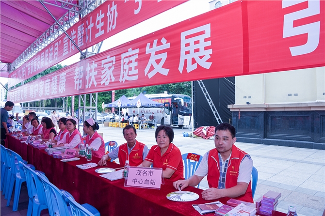 活动现场,有大型文艺演出、家庭医生签约、派发宣传单张解读全面两孩政策和孕前优生、无偿献血等知识。现场还吸引多名市民参加无偿献血,茂名市园林局5名干部在现场献血车上捐献了爱心血液,还有3名市民加入献血行列,共献热血2100毫升,为病患者做出应有的贡献。(图文:游清)
