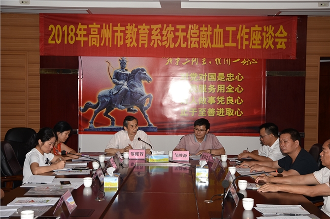 为进一步推动高州市教育系统无偿献血工作持续健康发展,提高师生参与无偿献血的积极性和自觉性。5月28日,2018年高州市教育系统无偿献血工作座谈会在高州市卫生和计划生育局六楼会议室召开。茂名市卫生计生局黎健智副局长、药政科科长李英、茂名市中心血站吕均芳副站长、高州市教育局蓝宗之副局长、高州卫生计生局邹胜源副局长以及高州市各中学等相关领导出席此次会议。