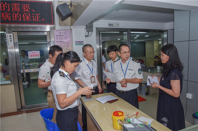 7月16日下午,湛江市卫生监督所李文濠科长一行4人代表省卫生监督所到我站进行检查指导工作,茂名市卫生监督所周昆就等4名同志陪同检查,血站领导班子、各科室主任参加了迎检。