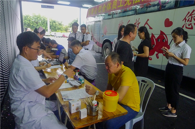 近期,在得知茂名市血液储备量短缺的情况后,茂名市京粤实业有限公司向员工发起了“传递爱心,奉献热血”无偿献血的倡议,得到广大员工的积极响应。7月24日上午8点半,茂名市中心血站的采血车开到了京粤公司内,现场为献血者采血,京粤公司全体员工用实际行动表达了对社会的关爱之心,为打造幸福茂名贡献自己的一份力量。
