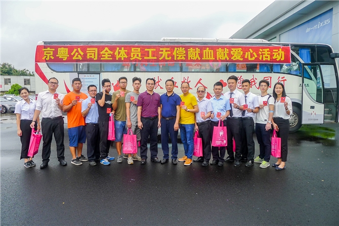 在京粤汽车城场内,血站及京粤公司为参与体检及献血的员工精心准备献血前后需补充的饮品,京粤公司各部门领导和员工认真填写登记表,体检量血压、进行血液初筛,合格后轻松地走上献血车献血。京粤公司董事长江浩华先生也亲临献血现场慰问员工,给大家鼓励和打气,以及各品牌店部分员工也从四个县市赶回公司总部参加了此次献血活动。京粤公司员工在献血车前排起长长的队伍,很多员工都是从工作岗位上赶来奉献爱心,猎豹汽车陈经理已是第7次参加无偿献血,猎豹汽车杨灵是第四次参加爱心献血,还有更多可爱的京粤员工都非常踊跃。他们共同的心声是:“作为一名自愿献血者,他们觉得能用自己的鲜血给那些需要帮助的人带来健康和生命,是件非常有意义和快乐的事情。”