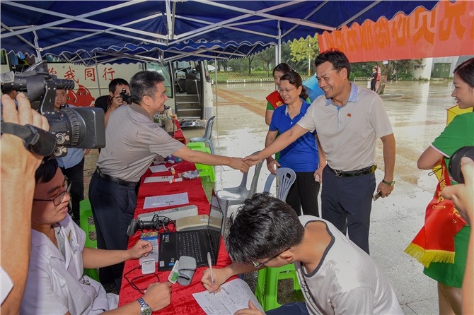 血液是医生救治危重病人的好帮手,市中心血站派出医务人员和献血车到现场,方便市民参加无偿献血,血站工作人员向现场的观众派送宣传单张和宣传纸扇,因为天气炎热,宣传纸扇大受欢迎。茂名市水务投资集团有限公司7名员工赶到现场参加献血,献血总量1700毫升,为茂名市伤病员贡献了自己的一份力量。(图文:游清)