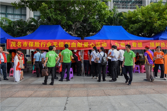 9月6日,茂名市保险行业协会和茂名市中心血站联合在市中心城区文化广场图书馆南侧开展主题为“喜迎省运会 献血嘉年华”的无偿献血献爱心活动。