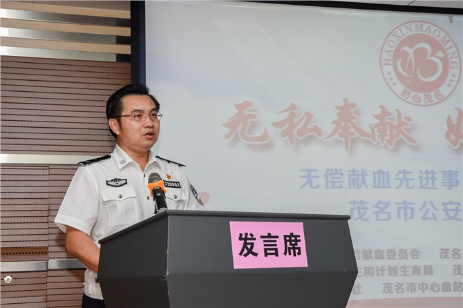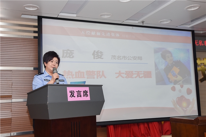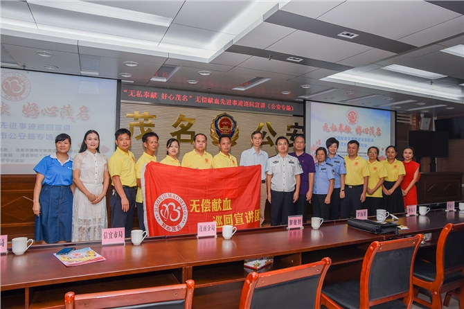 “无私奉献 好心茂名”无偿献血先进事迹巡回宣讲活动由市无偿献血委员会、市文明办、市卫生计生局三部门联合组织在全市开展,此次宣讲活动已经是第6场举办。据统计,自2015年以来,全市各级公安机关献血人数2146人,献血量达55万毫升,仅市公安局就有1000余人次参与无偿献血,献血量超过21万毫升,连续三年被省、市评为无偿献血先进单位。