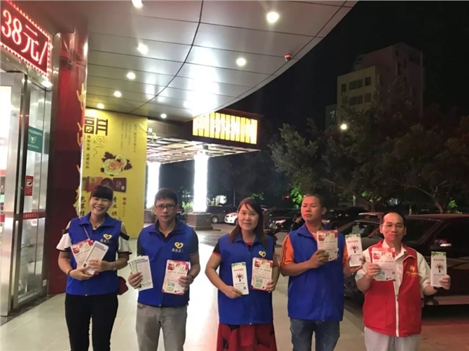 活动前期,制作《献血法》实施20周年专题视频在全市各区及乡镇循环播放宣传、张贴海报、派发宣传公告、悬挂宣传横幅、微信推送,组织工作人员和茂名市义工协会义工40多人分7组分别到茂名市各大商场等人群集中地带派发宣传资料,以面对面交流的形式宣传献血知识和无偿献血的意义。
