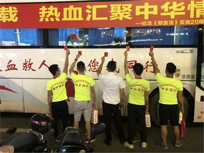 每人献出一滴血,汇成生命的海洋。国庆节主题献血活动在茂名各区13个活动场地展开,得到当地市民的踊跃支持和参与,茂名市的义工们在服务献血者的同时,也抽出时间参加献血。年过六旬的无偿献血志愿者江建伟,已获得全国志愿服务奖五星级及志愿服务终身荣誉奖,国庆期间他连续3天在茂名市城区、高州市、信宜市主题活动现场都参加志愿服务活动,每个地方服务都超过10个小时。献血现场有血站工作人员忙碌的身影,血站员工在工作之余也不想错过以奉献热血的方式祝福祖国繁荣昌盛及纪念《献血法》20周年。他们分别是何康勇、梁文超、李嘉辉、王卫平、文禄敏。