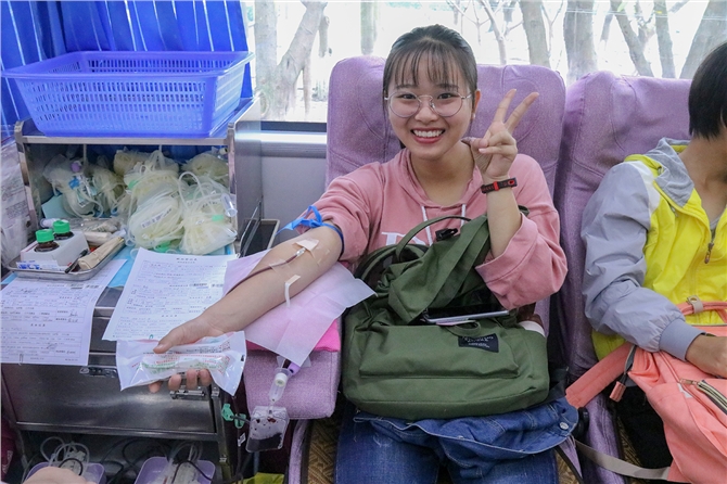 早上8点30分,参加无偿献血的同学从学校的四面八方成群结队的来到了活动现场,从填表、体检、喝糖水、上车献血,在工作人员和志愿者的指引下,现场井然有序。只见活动现场,热闹非凡,每一个区域都逐渐排起了长长的队伍。校青协的志愿者展现了优质的服务精神,在血站工作人员和学生干部的指导下,每一个区域都有志愿者维持现场的秩序、做指引、解答同学们的疑问。同时,还有志愿者穿梭于活动现场把开水、糖水和蛋糕派送给排队等候的同学。值得赞扬的是,上一届的校青协干部也来到现场当志愿者,支持学弟学妹的工作,他们说似乎又回到自己当学生干部参与献血活动的时候。校团委副书记赖新华和校青协秘书长杨东娥老师也来到现场指导工作,他们和献血的同学交流心得体会,为同学们加油打气。赖书记提到他曾经也是校青协的学生干部,感慨市中心血站一步步的发展,他表示无偿献血需要所有人员的大力支持。